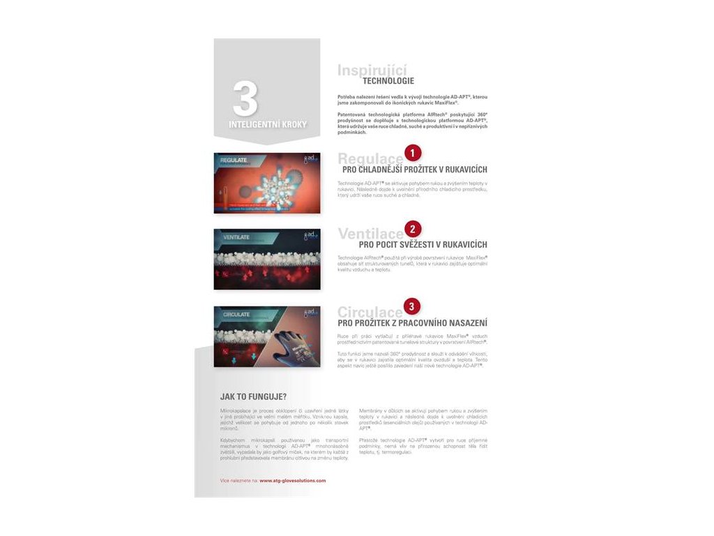 Technologie AD-APT® se aktivuje pohybem rukou a zvýšením teploty v rukavici. Následně dojde k uvolnění přírodního chladicího prostředku, který udrží vaše ruce suché a chladné. Je navržena tak, aby vydržela po celou dobu používání rukavice, a lze ji prát.